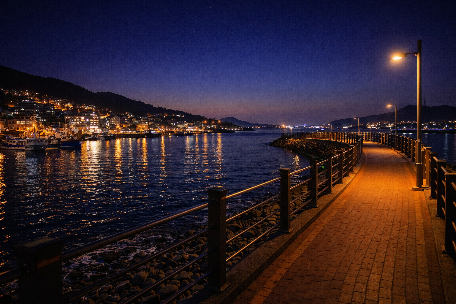 완도항 산책로는 현지인들이 즐겨 찾는 야간 산책 명소입니다.